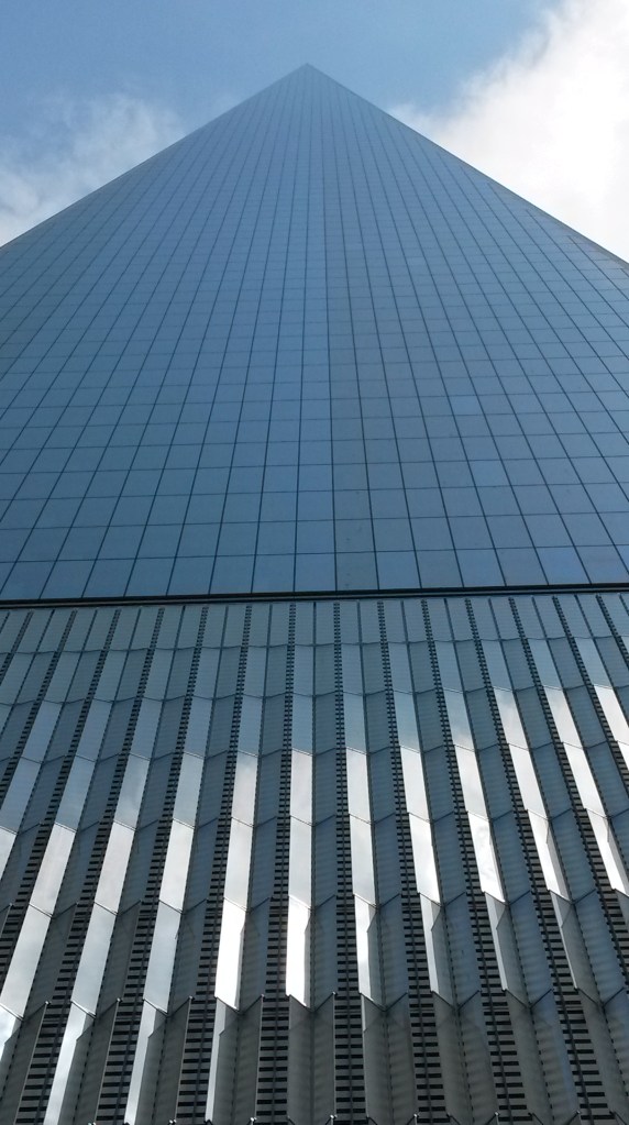 I send mum first and I stay close behind her, just in case! We climb the 354 steps and finally reach the crown. It’s cramped, there’s not much space and there’s a line of tourists in front and behind so not long to stop and enjoy the view. We peer out of the little windows, take a few snaps and swap positions. I’ll go down first, just in case! By half way down I’m a quivering wreck. Mum’s loving it, not in the slightest bit bothered by the height, heat or steepness of the steps. I can’t wait to get bloody down! Finally, back on terraferma, we catch the ferry back to Manhattan and make our way to the new World Trade Centre.
