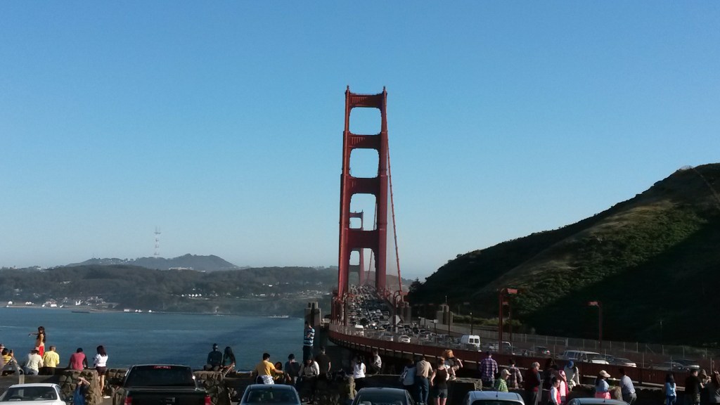 Back on the bus and over to the Golden Gate Bridge, one of my highlights. The wind coming off the Pacific Ocean takes your breath away, and it wasn’t warm! My hair says it all! But the bridge is stunning, resplendent in orange. It might not be the biggest bridge in the world, or even in San Francisco but it’s certainly beautiful. We stop at the view point for a little while and enjoy the view of the bridge and city beyond. We brave the top deck of the bus back over the bridge as we head back in to the city.