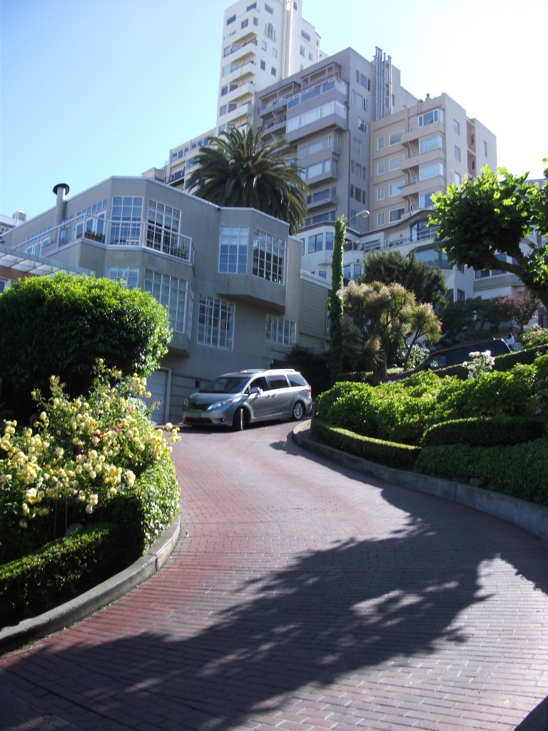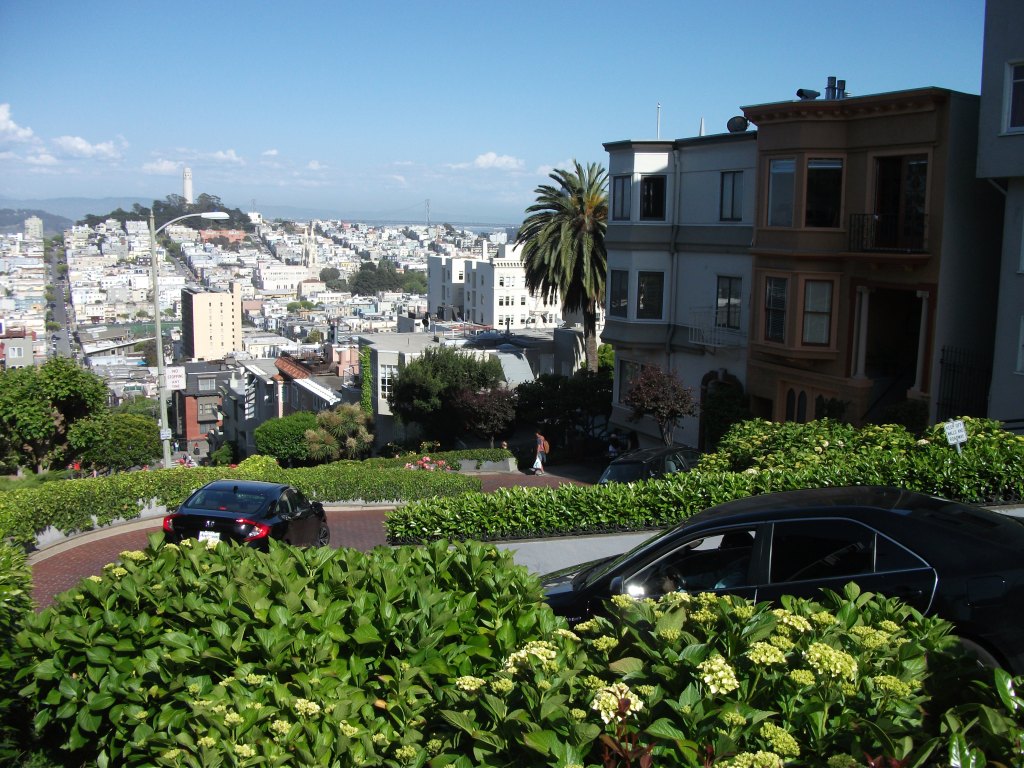 En-route back to the hotel (which has free Wi-Fi, by the way!) we decide to hike up a mountain in the direction of Lombard Street. Mum nearly has a coronary but the views back over to the bridge and down the crooked street are worth it. Plus, we must have burnt a ton of calories! We walk down Lombard and stop to take some snaps. I was surprised that the street is open to cars and the there was no shortage of drivers waiting to test their skills. Thank god that American cars are automatics, I wouldn’t want to test my clutch control on those hills!
