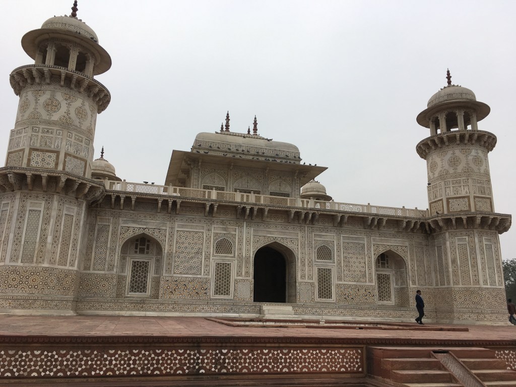 We got the hotel, Howard Plaza The Fern, around lunchtime and decided on a little rest before heading out for an afternoon tour to the Tomb of Itimad-ud-Daulah, known as the “Baby Taj”. Built in 1639 by the grandparents of Mumtaz Mahal, who the Taj Mahal was built for, was another red sandstone and white marble structure. Those Mughal’s really loved their red sandstone and white marble architecture!