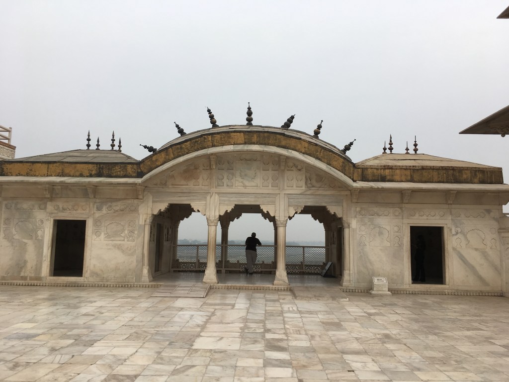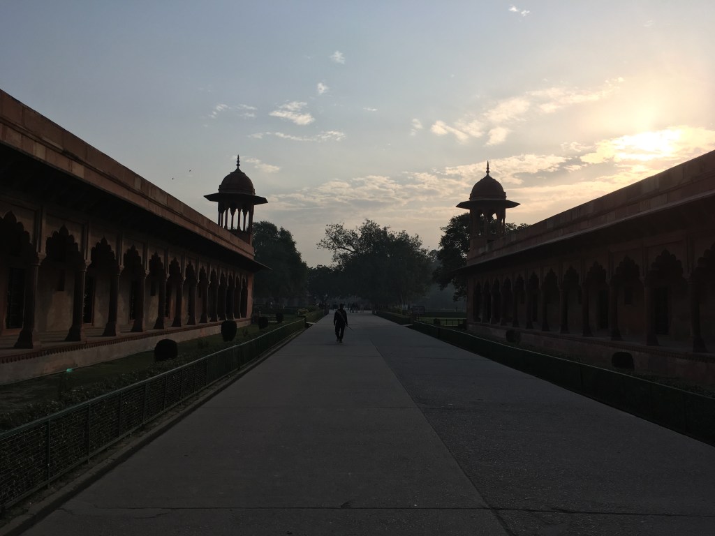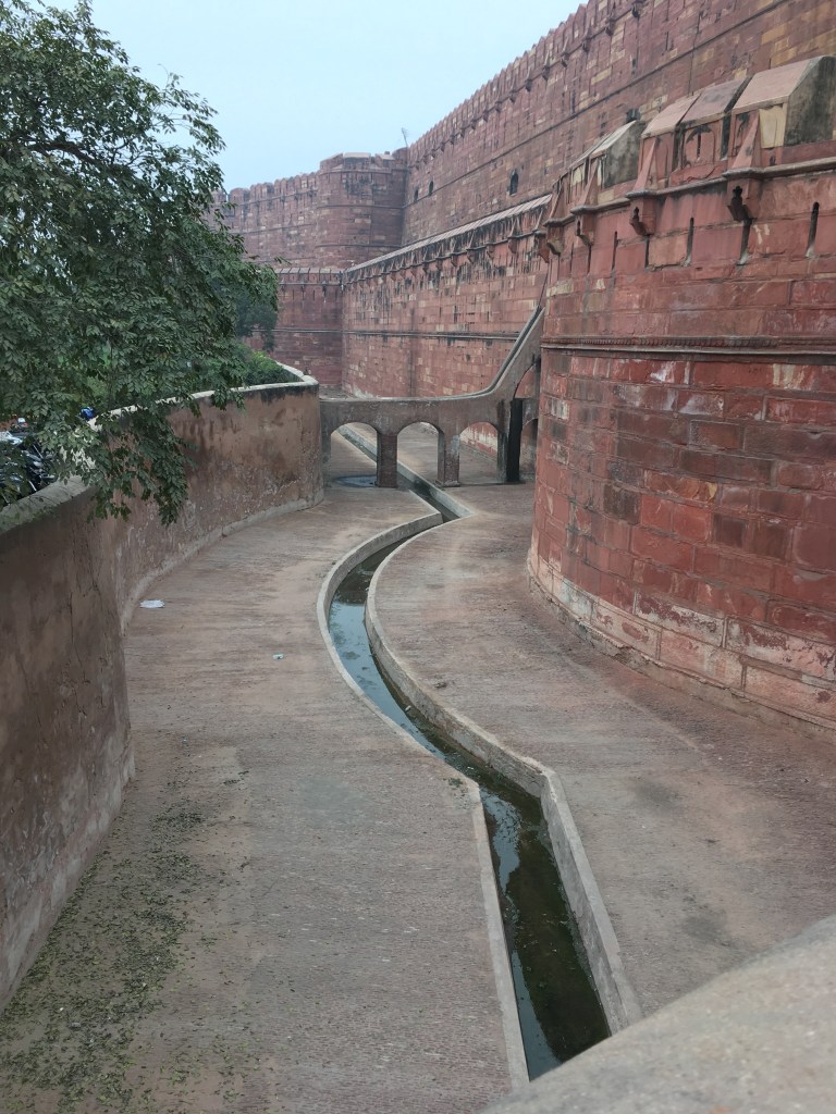 On our way back to the hotel, we made a stop at the Agra Red Fort. A walled city, built from – wait for it – red sandstone, which took over 100 years to finish and was the main residence of the Mughal dynasty until the late 1500s. Surround by a moat which would have been filled with natural security (crocs and tigers!), you could probably spend a full day exploring the 94-acre site. These are the kinds of old buildings that I really enjoy visiting, with old rooms, courtyards and gardens alive with history. The windows and balconies offered some great views of the Taj Mahal.