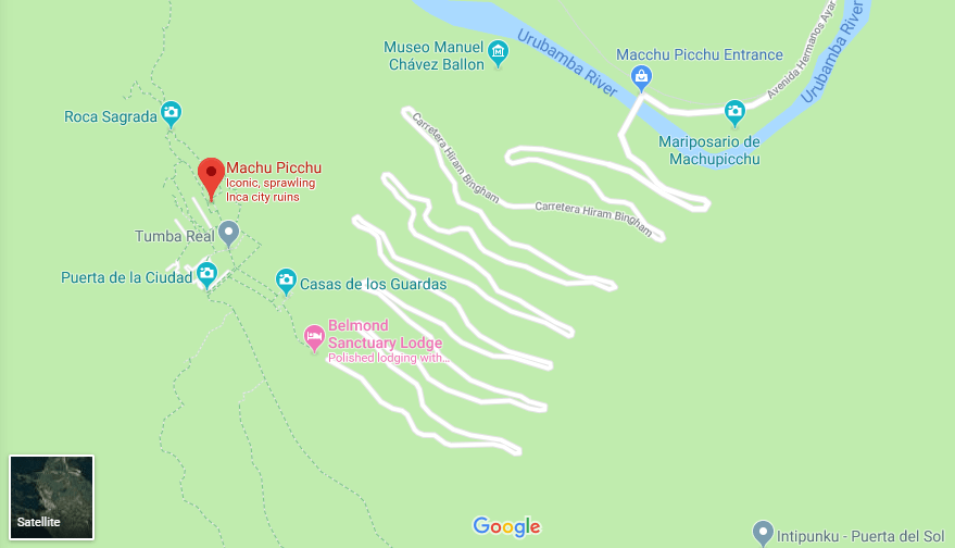 We dropped off our bags and headed straight to buy the tickets for the bus up to Machu Picchu. The queue for the bus gets massive so the hotel advised that one of us should go buy the bus tickets and the others join the queue for the bus, which is what we did. I queued for bus tickets for only about 10 minutes and the joined mum & the other half in the bus queue. The line was massive but it only took about 15 minutes in total as there were 2 or 3 busses at a time picking people up. The 25-minute journey up to Machu Picchu is an experience in itself and if you’re not great with heights, sit in the aisle seat on the right side of the bus on the way up! The white squiggle of road shown on Google doesn’t quite demonstrate the sheer cliff edges!