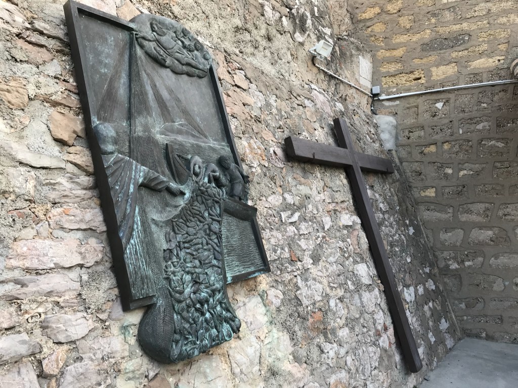 Walking off lunch, we headed into the centre of town which is surrounded by the 2-meter-thick fortress wall. Built in the 13th century, it was used as a jail for protestant women for nearly 2 centuries! We then visited the little church built around same time which had some interesting stained-glass windows representing sponges. It was pretty random and none of us knew what to make of it! The work was commissioned in the 1990s so it maybe made more sense then!