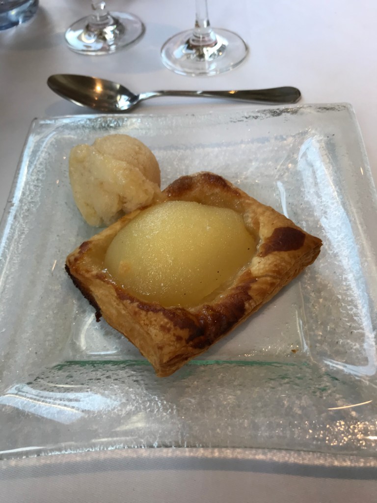 The amuse bouche before dinner this evening was a frog’s leg which didn’t go down well with everyone! I gave it a go, but there’s so little meat on it the parsley sauce was all you could taste!
