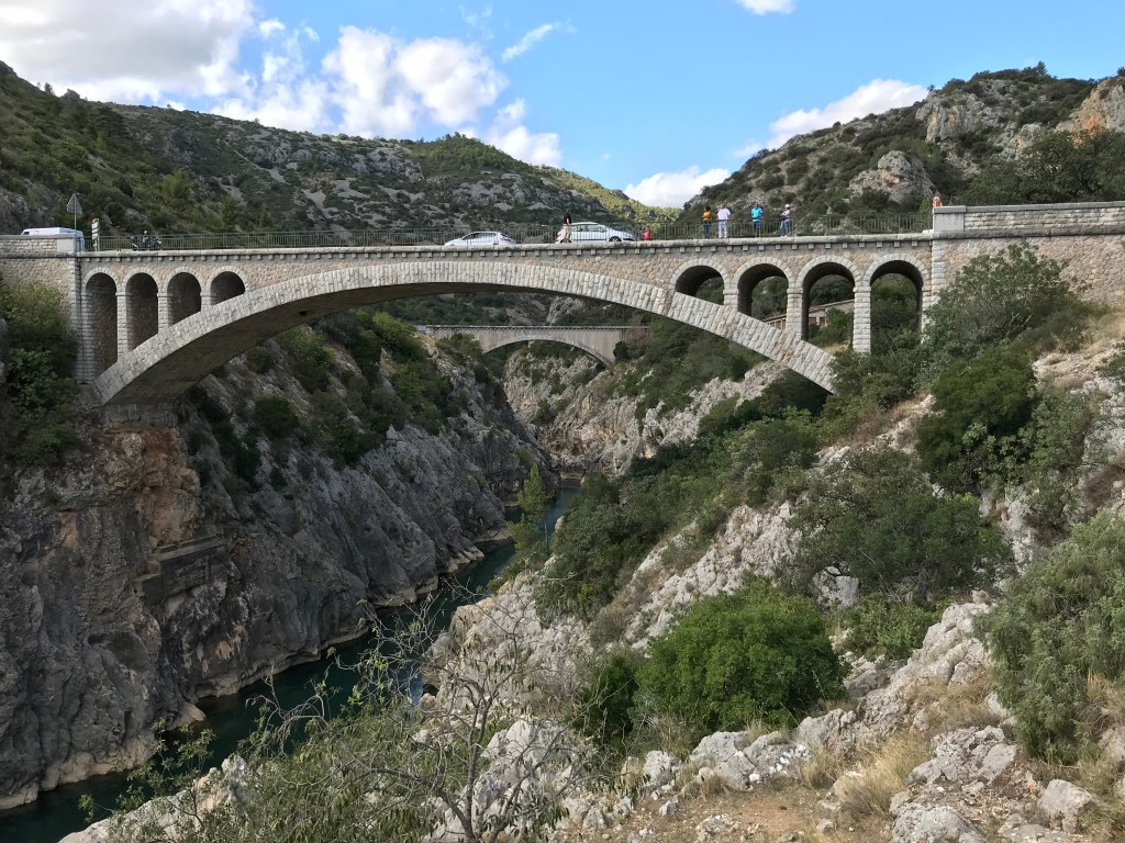 The bridges overlooked a stunning lake with lovely warm water which was so inviting as the temperature hit 31c. We didn’t stay long at the bridges and carried on the short journey to Saint-Guilhem-le-Désert, one of France’s most beautiful villages. Built around the 12th century Benedictine abbey, it’s a stunning little village; all cobbled streets on steep hills with little shops, cafes and restaurants. As this was the end of the September, the village wasn’t overly busy and we could take time exploring its hidden streets.