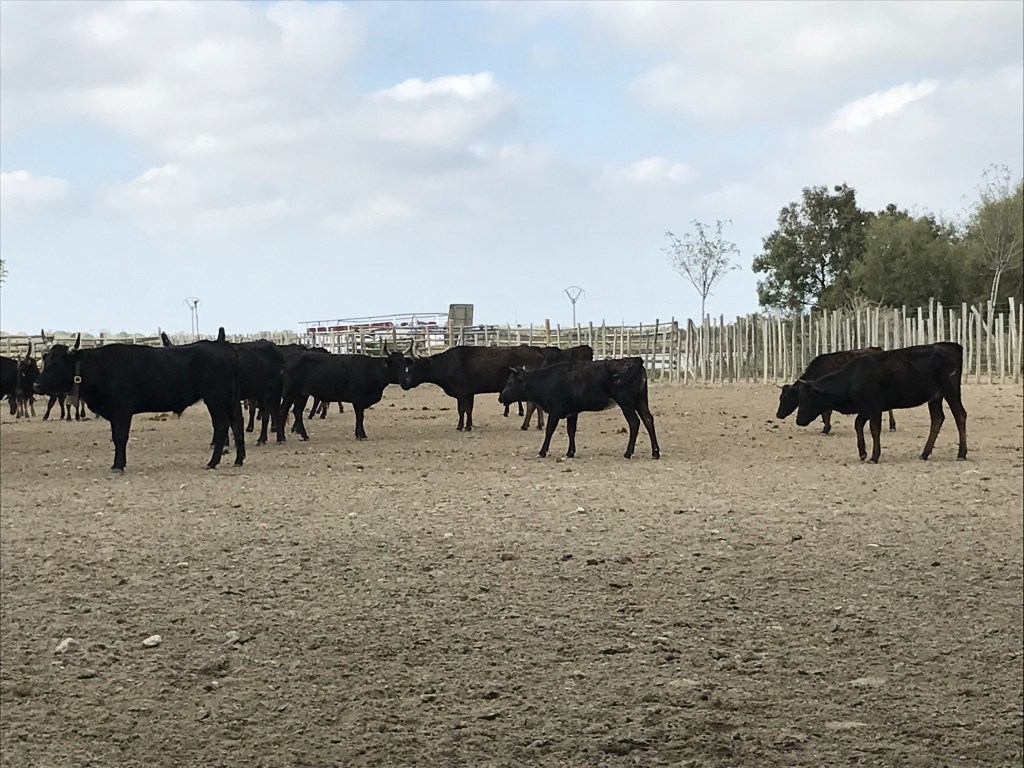 At 1200, Tiffany brought the Cocktail of the Day but it was quite medicinal and not to everyone’s taste. The base ingredient was Aperol but I’m not sure what it was mixed with, as I usually like Aperol. Nonetheless, the alcohol whets our appetite for the salmon wellington and tiramisu. The obligatory few glasses of wine resulted in a quick nap on the bus to a local bull farm.