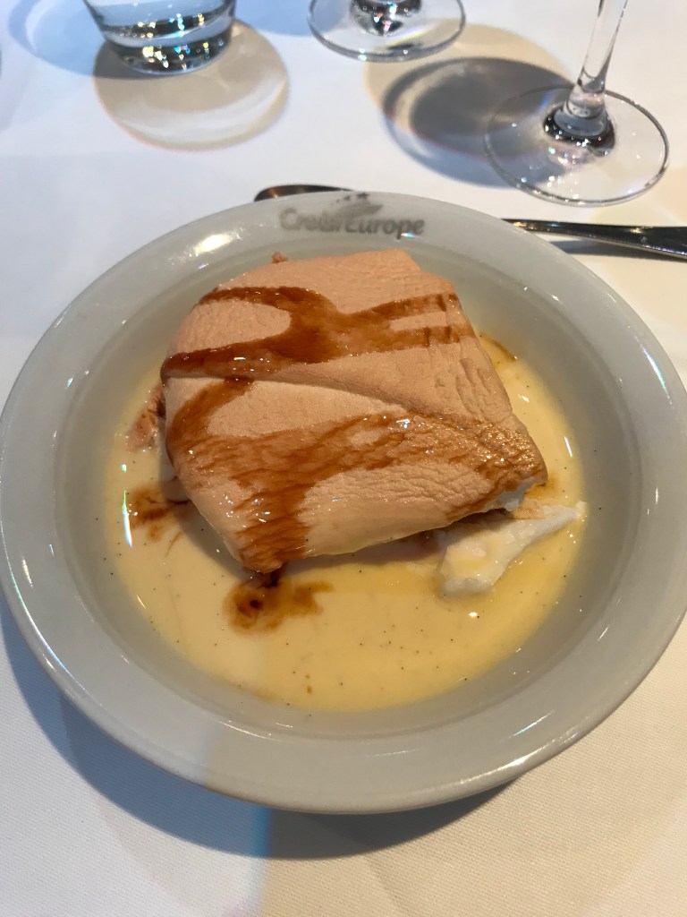 On the whole, the food was fantastic but I guess we should have expected that, being in France and all. The other half was quite nervous of the food as it is a set menu and he is quite fussy. The staff on the ship were great though and our waitress, Gabby, made sure that he was happy with each dish or provided an alternative. I had made them aware of some (not all!) of his dietary requirements before we arrived! Whenever we had fish, he generally had a vegetarian option although he did eat the salmon wellington!