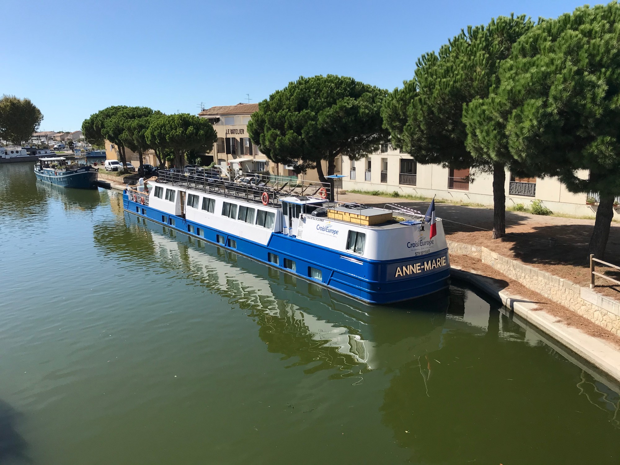 Arriving in Avignon after our mammoth train journey from London, the warm Mediterranean climate was very much appreciated after the cold of northern France and the UK. We boarded a coach to take us to the port city of Sète and arrived at the MS Anne-Marie about 2100.