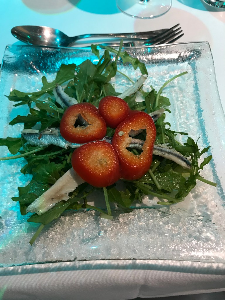 The buffalo mozzarella salad and crayfish with vegetables were much more enjoyable! The dessert was floating island but it didn’t have much flavour and had the appearance of whale blubber!
