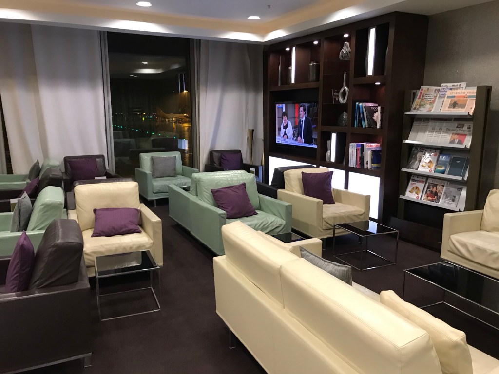 We made our way to the 1903 lounge and were the only ones in there! I was impressed with the décor and runway views, although it was too dark to see much. The only thing I thought was missing was tables to sit and eat at, especially as we were there at breakfast time and I had to eat off my lap which I’m never a fan of doing.