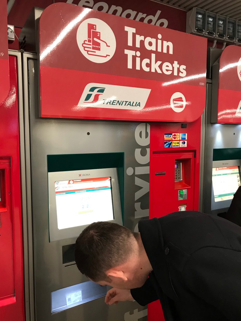 On arrival in Rome, we passed through passport control really quick and headed to the station to catch the Leonardo Express train to the city centre. At €14pp each way and taking about 35 minutes, it’s probably the best value way of getting between the airport & the city. There are ticket machines with multiple languages on your approach to the station and in the station itself so there’s a couple of opportunities to buy tickets. You will need a ticket to get through the barriers at the station.
