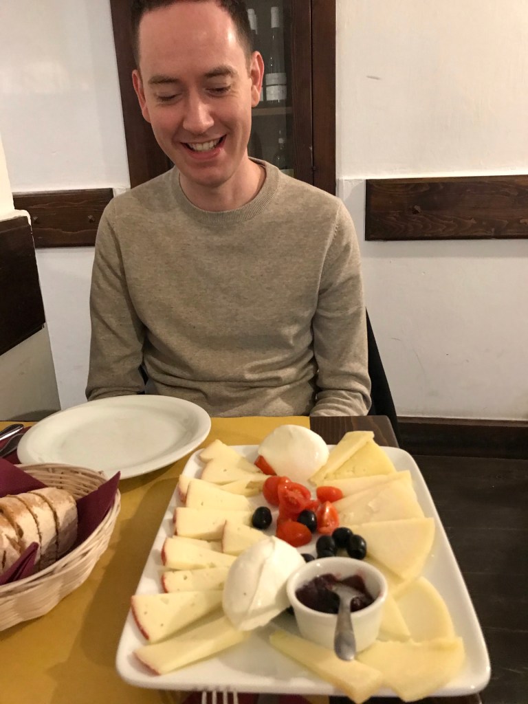 Absolutely shattered after our 4am start and walking about 6 miles, we headed back to the hotel for a nap before heading for dinner at a little osteria near to the Trevi Fountain. Whilst a lot of the restaurants in this area are tourist traps, the food was still excellent – why have I never put jam on cheese before?! – even if I waited too long for my ravioli.