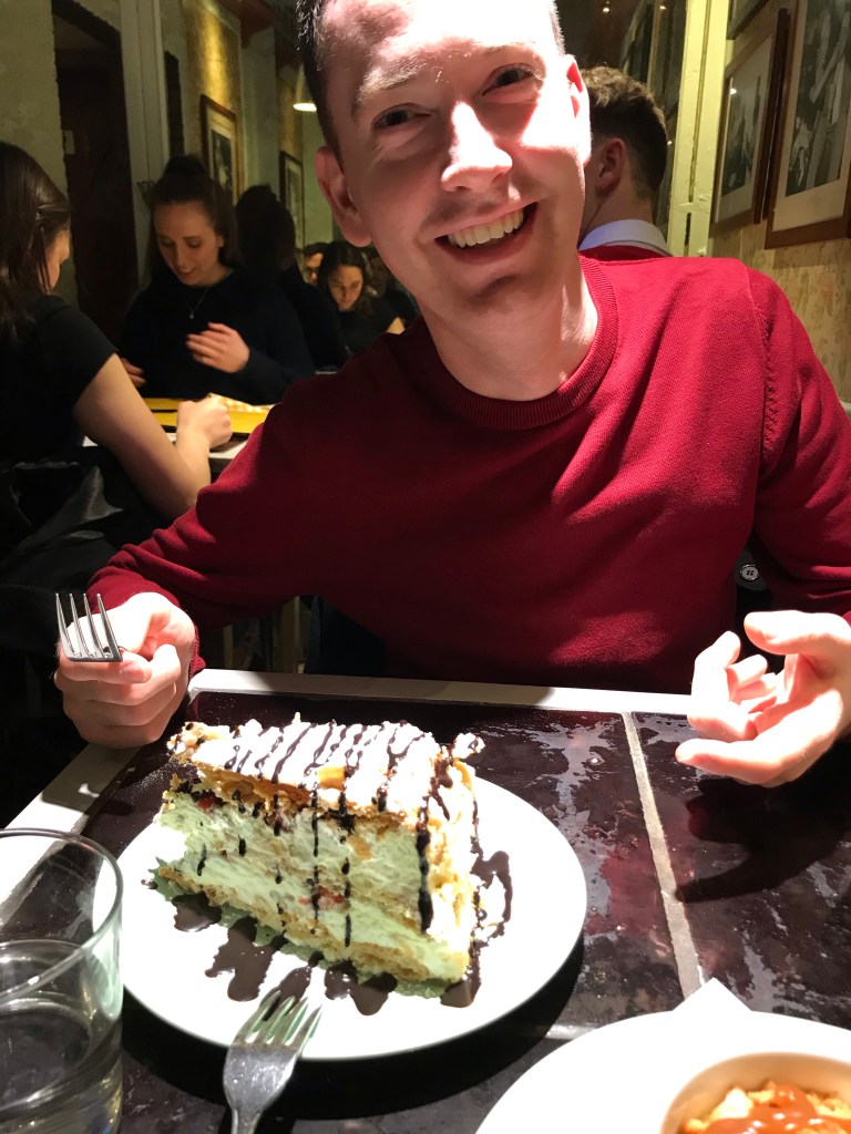 I’m not sure why, but we walked from the station to the hotel which took over 20 minutes and was up & down what felt like all 7 of Rome’s hills! I misread Google and we overshot the street that the hotel was on and instead followed the signs for the Trevi Fountain, which I knew the hotel was near. Even after finding the fountain, we still managed to walk past the hotel but, in our defence, the entrance is just 1 door! After dropping off our bags, we stopped at a little cafe where we shared a toastie to save on calories but then still had 2 desserts!