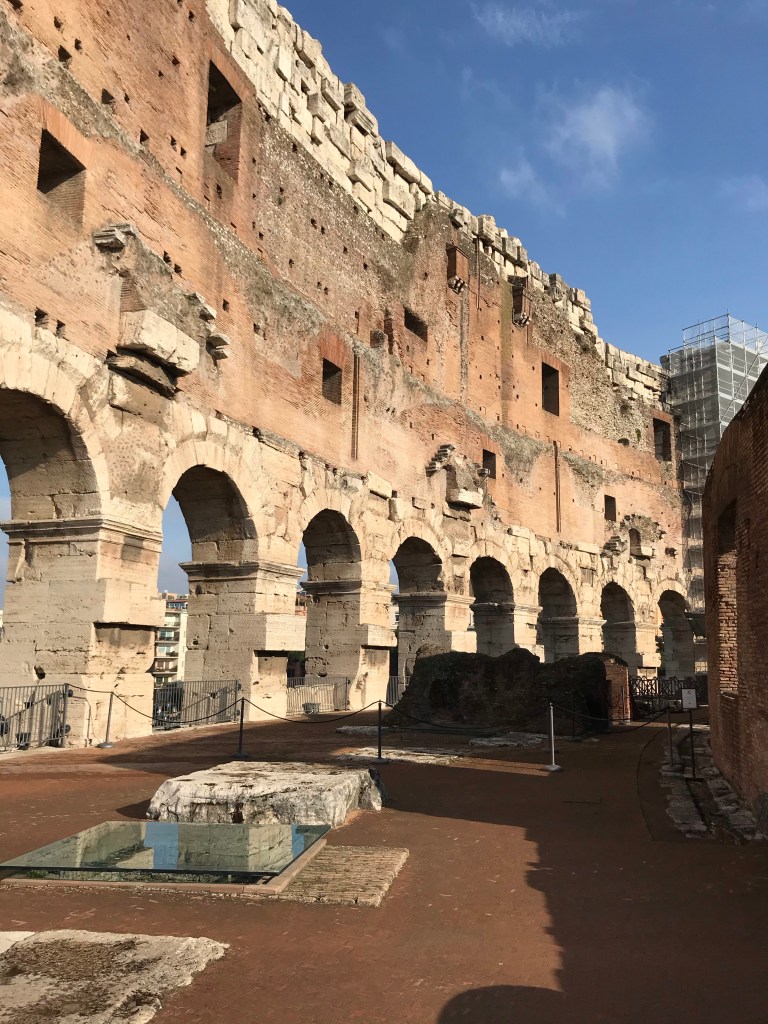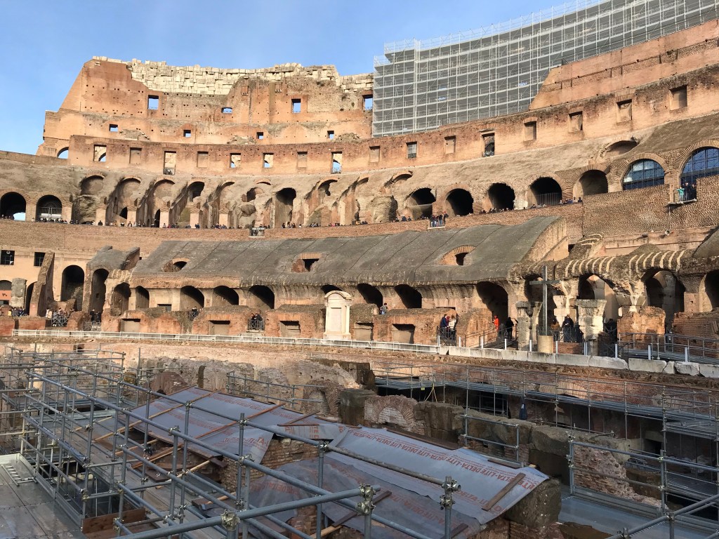 Up early the next day, we had a tour of the Colosseum booked for 0925. As the weather was cold and bright, we walked from the hotel and got to the Colosseum for around 0900. The streets leading up to the Colosseum were quiet and it was great to feel like we had the place to ourselves. Even the Trevi Fountain didn’t have a massive crowd around it!
