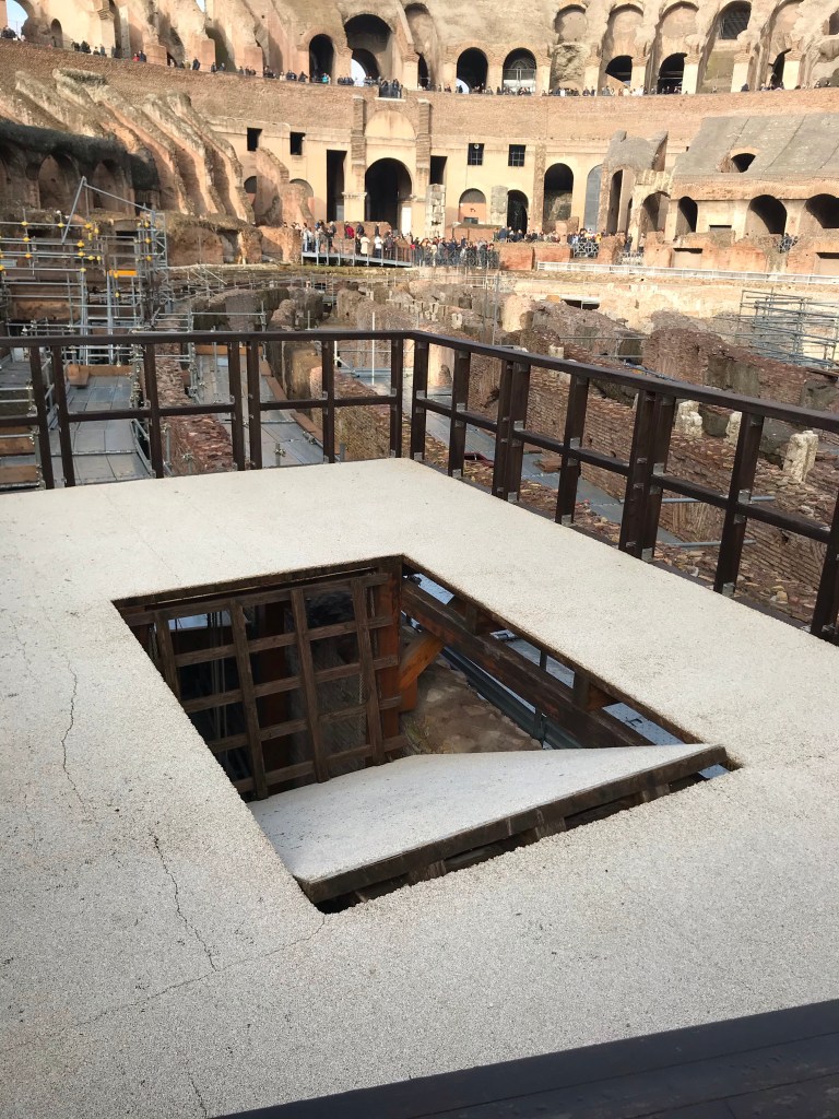 Mornings at the Colosseum used to be about animal fights, with exotic breeds shipped from around the world. Lunchtimes were spent on criminal executions before the gladiator shows started in the evening. A replica lift and pully system shows has animals were brought up into the arena via one of 40 elevators which gladiators would have to fight off, not knowing which elevator was going to come up next.