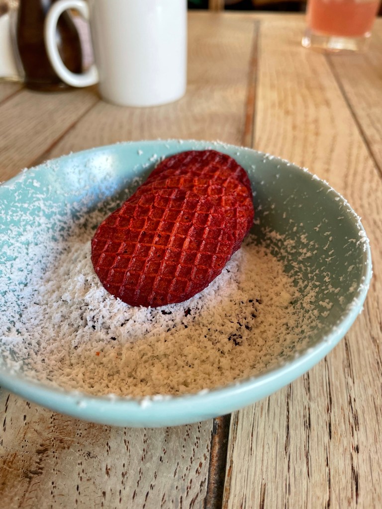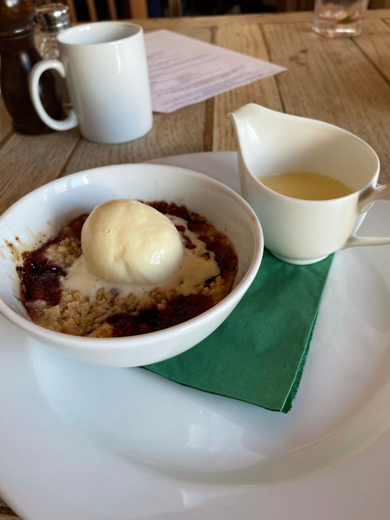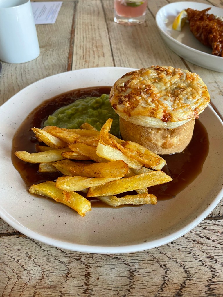I had a beetroot and goats cheese mouse followed by a Gruyère, beef and ale pie with chips. The beef was slow cooked to perfection and the cheesy crust on the pie was delicious. I would have liked more chips though! The dessert of plum crumble with Amerreto ice cream was the highlight of the meal, the ice cream was ridiculous!