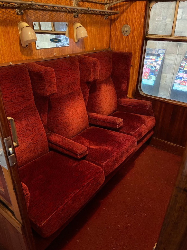 The views aren’t as spectacular as we’d seen in Scotland but beautiful, nonetheless. Yorkshire isn’t called God’s Own County for no reason! Cutting through the rolling hills, passing streams and little waterfalls. It’s a very relaxing journey. Because it was so cold outside, the carriage was heated by steam which made it very atmospheric!