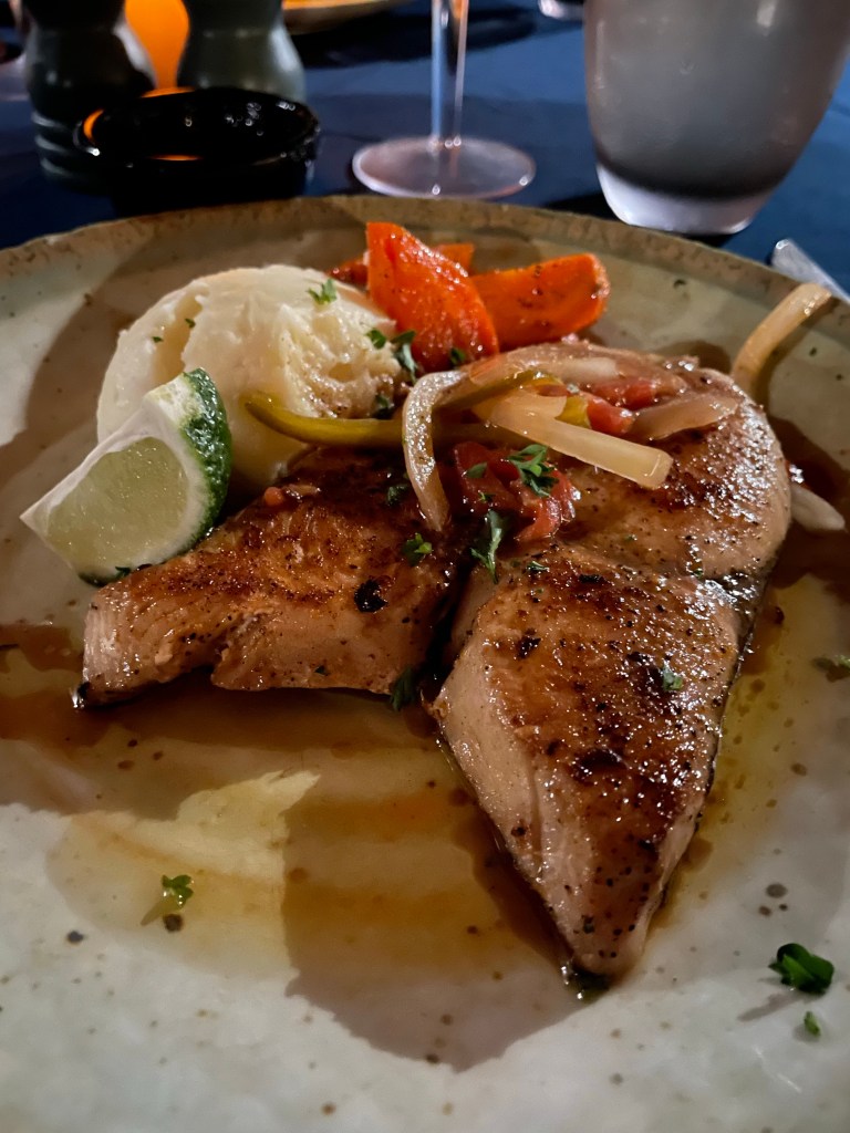 On our second visit, the bread was amazing, lovely warm rolls which just melted the butter right in to them, but both mine and mum’s mains were cold, and I mean cold. My king fish was so flaky and had a wonderful texture but was cold. After we sent it back, the blast in the microwave made the meat tough, even if it was still tasty. For both meals, the garlic mash was delicious but the star of the show was the mango crème brûlée. It really was stupendous, one of the best desserts I’ve ever had. I had it both nights, we both did!