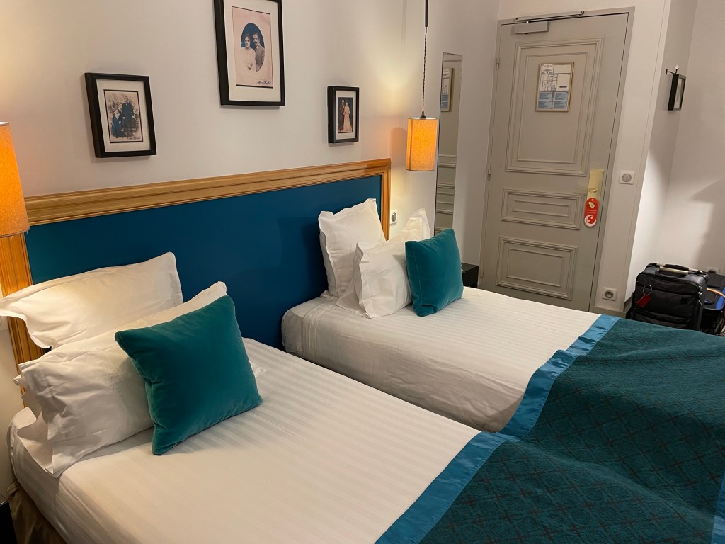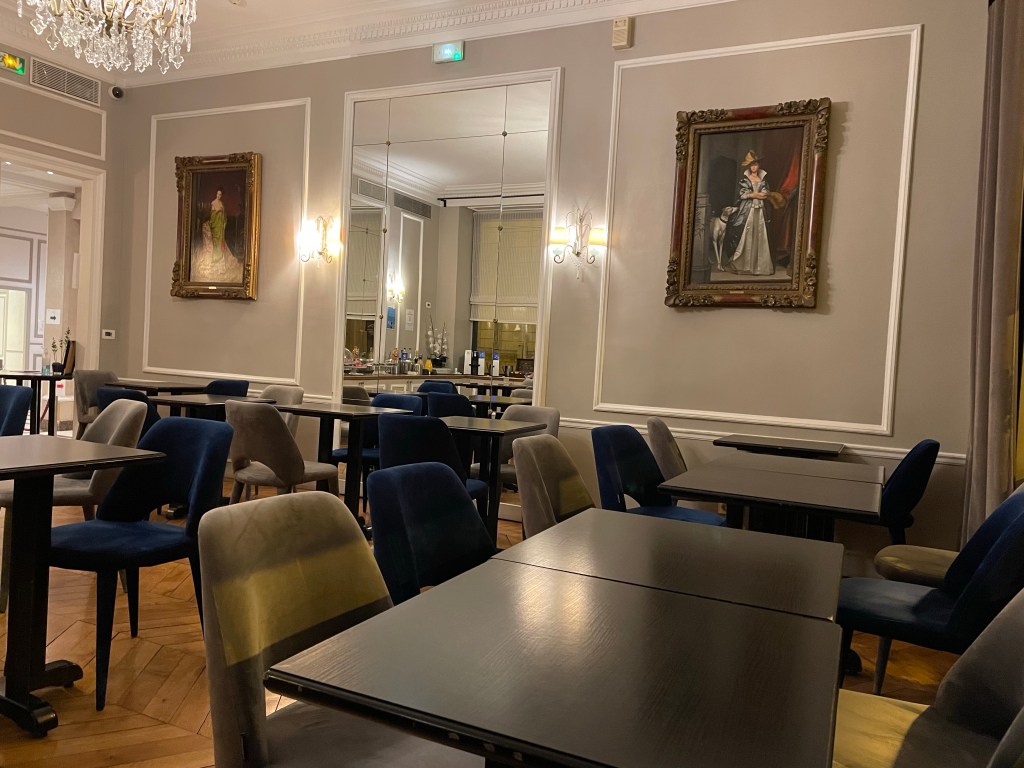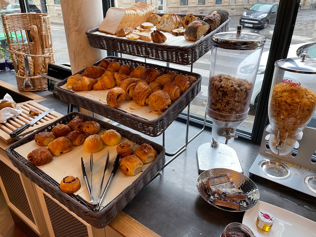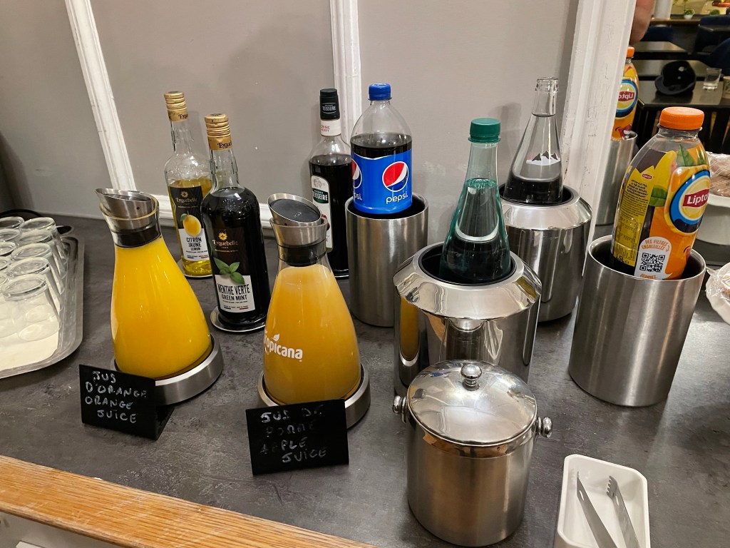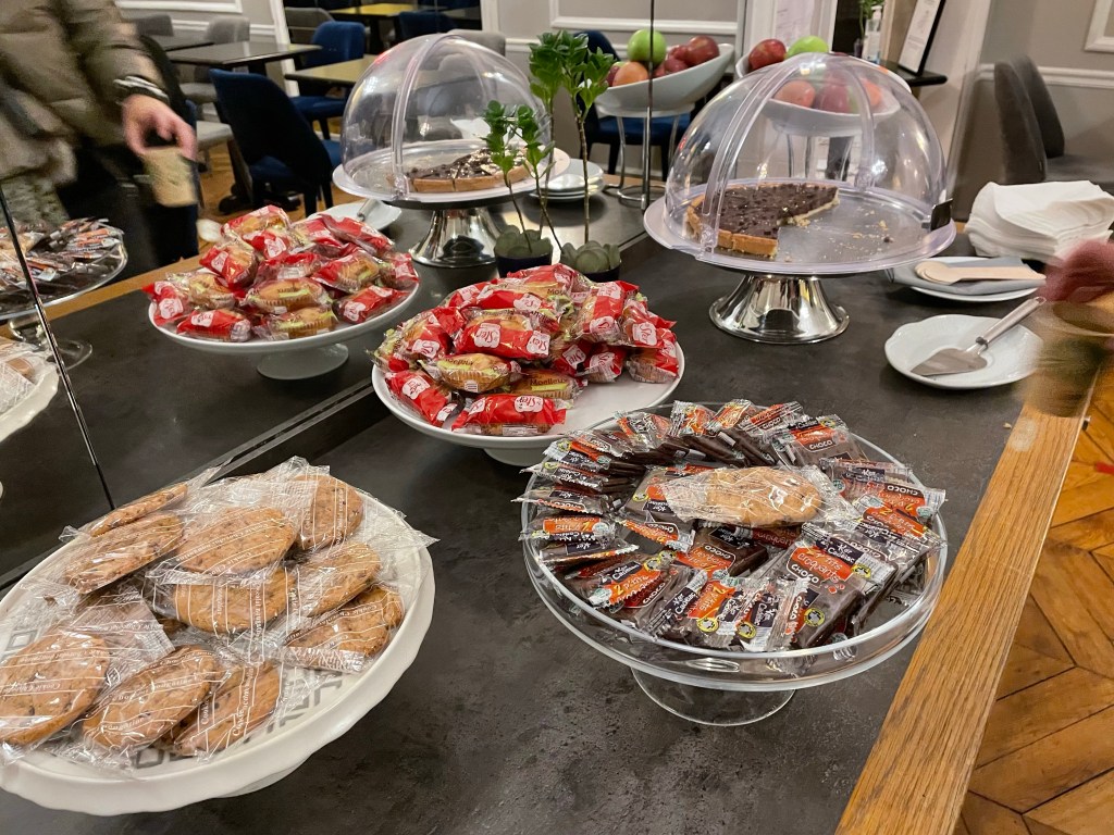 We sat in the snack room a couple of times, usually after getting back from a walk and there’s a decent selection of teas, coffees, juices and pastries. The chocolate tart was swoon-worthy. You can even use the free snacks at the hotel’s sister properties – all 16 of them – so if you’re exploring and happen across another Astotel property, you can pop in for a cuppa and it won’t cost you a penny. That’s pretty decent in an expensive city like Paris. They even give you a map at check-in so you know where the other hotels are.