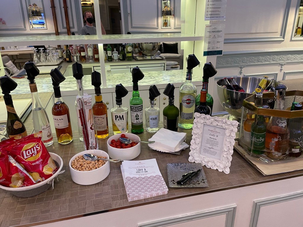 I liked the honesty bar concept (fill in the sheet with the drinks you’ve had and pay on check-out) but weren’t much interested in alcohol after a week at an all inclusive, and the room is very brightly lit which isn’t great for a relaxing drink.