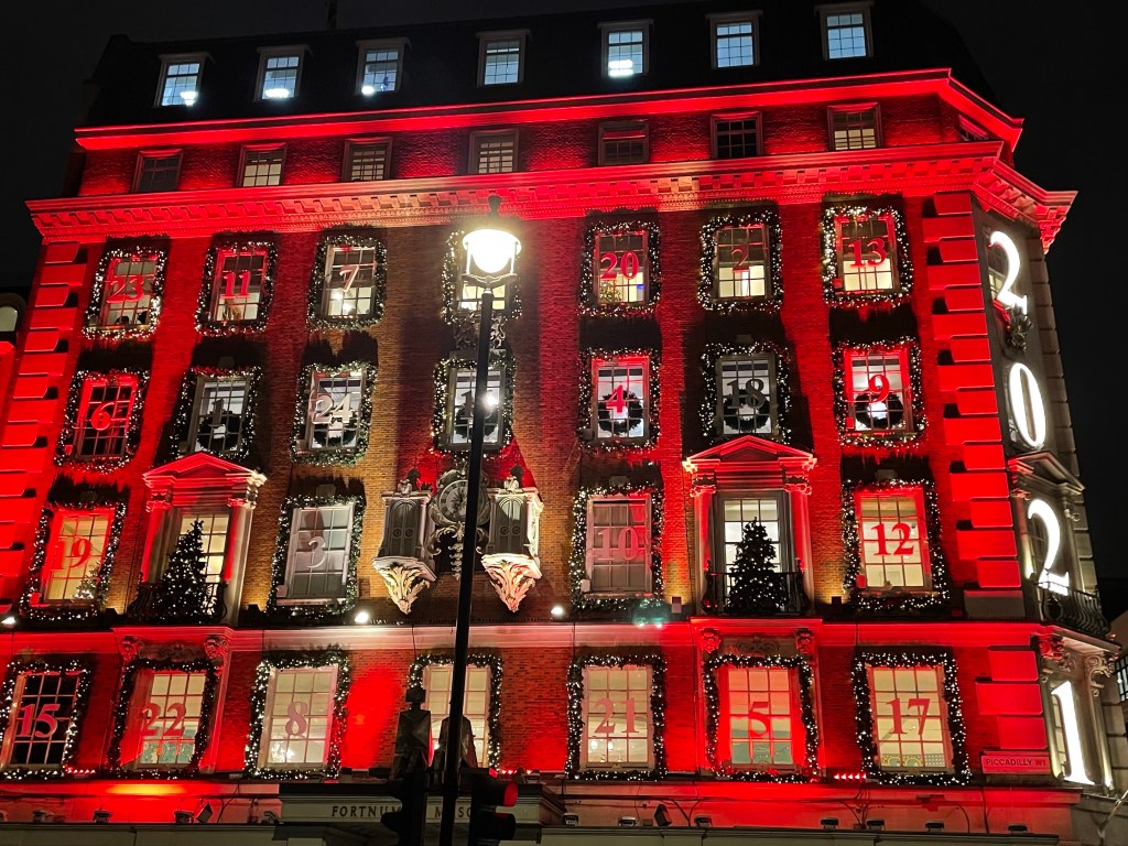 After browsing the stalls, we walked around Regent Street and Piccadilly checking out the Christmas lights and window displays. Fortnum & Mason was spectacular!