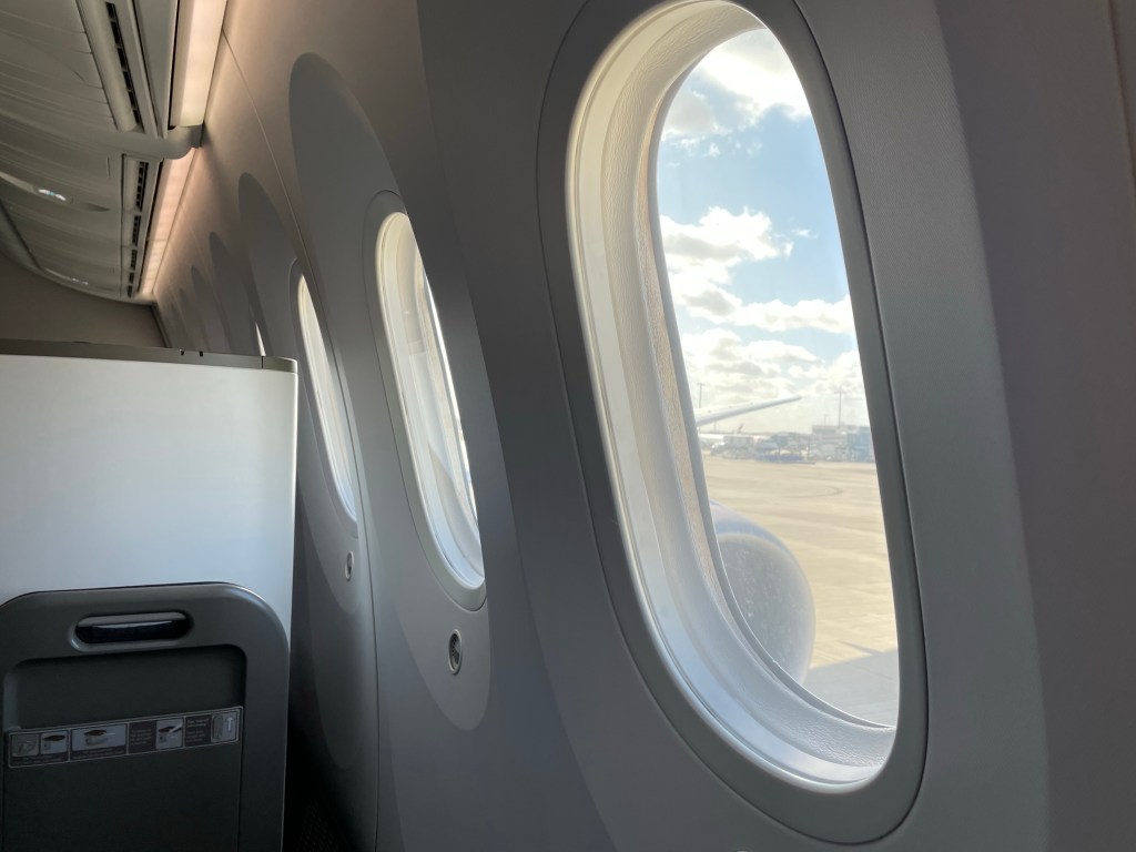 The cabin definitely shows it’s age despite the 787 Dreamliner we were flying on only being 7 years old, but the yin-yang design doesn’t feel as cramped as I imagined it would be. One interesting factor about this seat design is that the window seats are all rear facing (aisle seats all face forwards) and I enjoyed the novelty of facing backwards, especially as I had 3 windows to myself which was great for takeoff and landing.