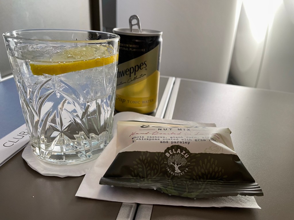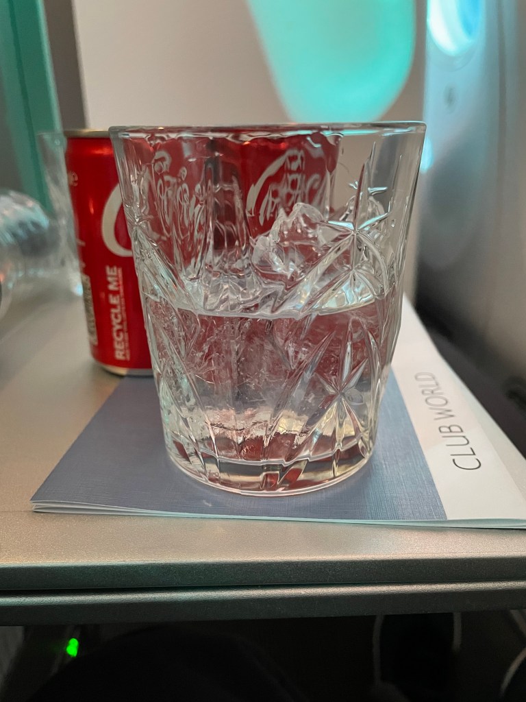 As the crew were still “limiting contact”, refreshments were self service in the galley so I headed to have a nosey at what was on offer. To be fair, there was some crew milling around and one of them brought my vodka and coke to my seat after I ordered it. Half a glass of vodka is a bit intense though!