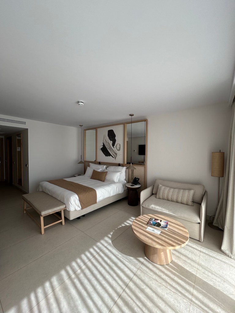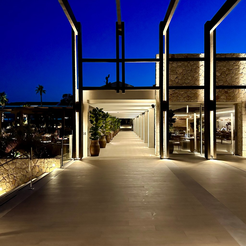 Of the 4 Ikos hotels we’ve been to, Porto Petro wins hands down for views and scenery. The vista over the port as you walk around the corner to reception is breathtaking. Everywhere you look, there’s pine trees, olive trees and fragrant flowers with the glimpse of a quiet cove and a few little boats in the background. Admittedly, the resort only open a few months before my visit, but everything sparkles with newness and the level of detail and design is everything you would expect from a modern luxury resort. The Porto Petro Bar in particular is beautiful, with lots of comfy seats and views across the marina. It’s just perfect. My second favourite bar was the Sa Torre pool bar next to Fresco restaurant. Although the Beach Club is also stunning! Pictures do not do this place justice, seeing is believing!