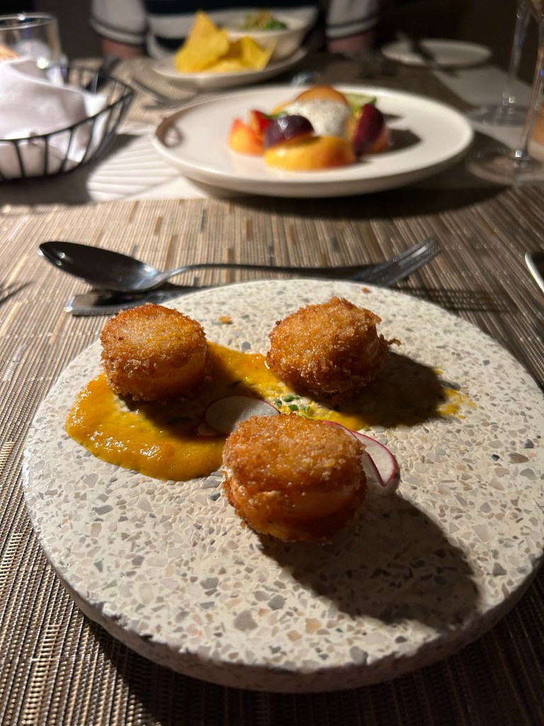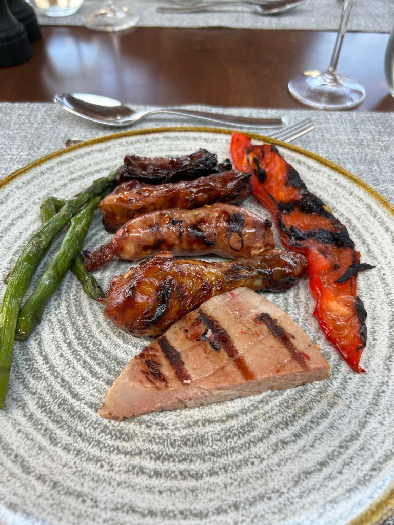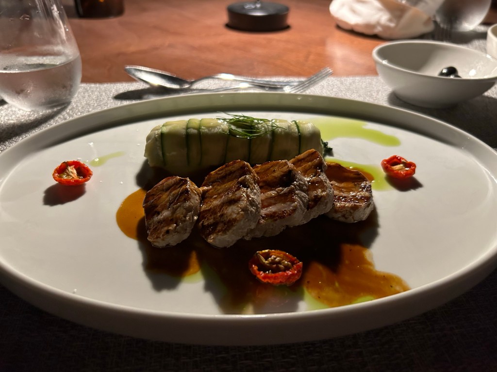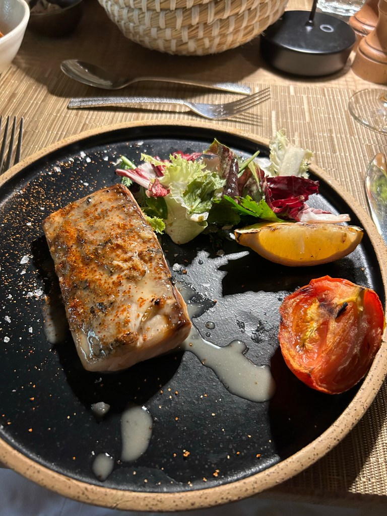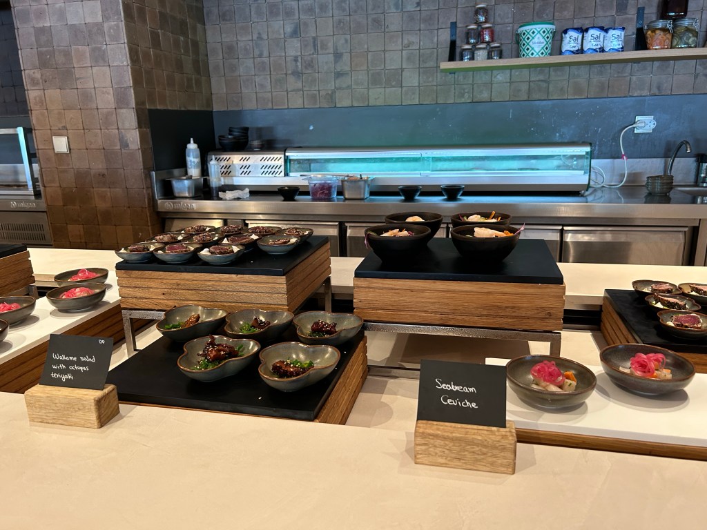 Seasons is open only for deluxe guests for breakfast and lunch, and we booked for our final dinner there as the menu seemed the most exciting. Maybe my expectations were high but it wasn’t my favourite meal. 3 prawns was a tiny portion even as a starter (glad we ordered burratta to share!) and the sesame salmon was only ok. Having said that, the other half was really impressed with his meal so it is as much down to personal taste.