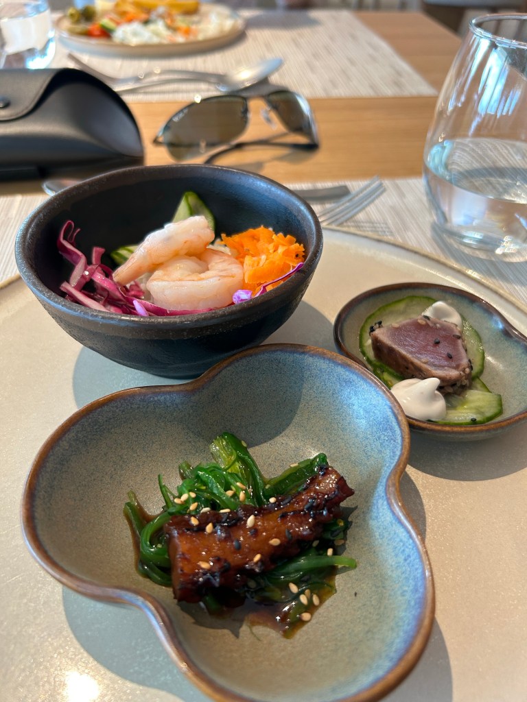 Lunch at The Market was mostly ok. There was a good choice of Italian, Greek and Asian. I loved the poke bowls and the seared tuna and sesame octopus was lovely. The lamb chops though, were inedible and nothing but gristle.