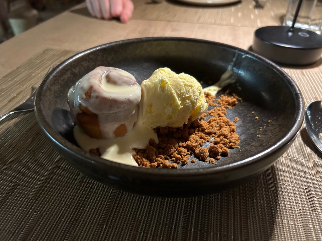 For dinners, there’s a choice of Anaya (Asian), Fresco, Oliva, The Market, Beach Club and Seasons. Beach Club was one of our favourite places to eat. The garlic prawns were great, and they served it as a starter for me although technically a main. The cinnamon bun dessert was amazing; but then I just love anything with cinnamon! The other half enjoyed the meat balls so much, he had them for lunch the next day!