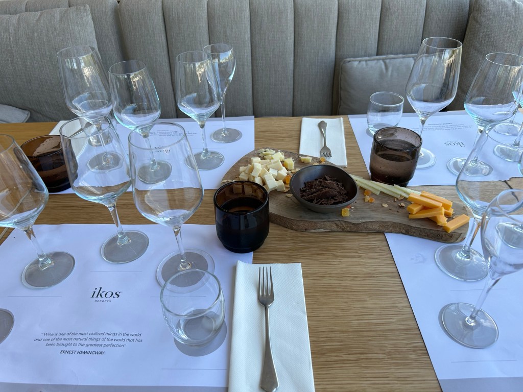 Much like the wine tasting class we did at Ikos Dassia, Maria taught us about the grapes and production but also how to pair with food. These are the most useful things to learn at a wine tasting.