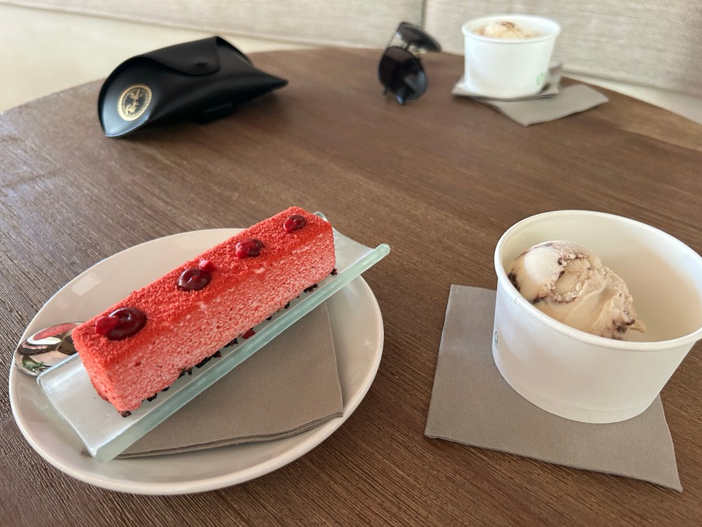We didn’t always have dessert in a restaurant but headed to the Gelateria and patisserie instead. Hidden away on the lower ground floor, underneath the lobby bar and opposite The Market, you wouldn’t know it was there and it’s probably the best kept secret of the hotel. With about 20 flavours of ice cream and a selection of amazing little cakes, it was one of our favourite haunts.
