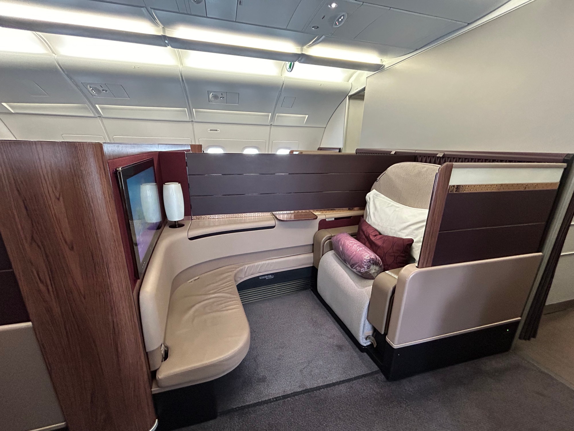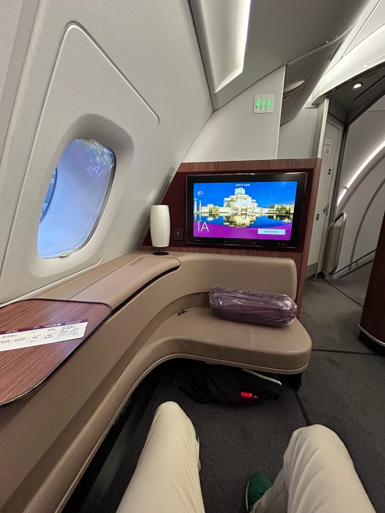 Qatar, known for their frequent aircraft swaps, changed the A380 to a 777, downgrading us from First Class to Business. At least it was a Qsuite 777 so I was quite happy to accept the change as I’d not flown Qsuite before. After lots of back and forth, Qatar also agreed to honour access to the Al Safwa First Class lounge during our layover, so on the whole, the change wasn’t too bad. I was also able to upgrade the inbound Business Class seat on the A380 to First Class, so I wasn’t really losing anything.