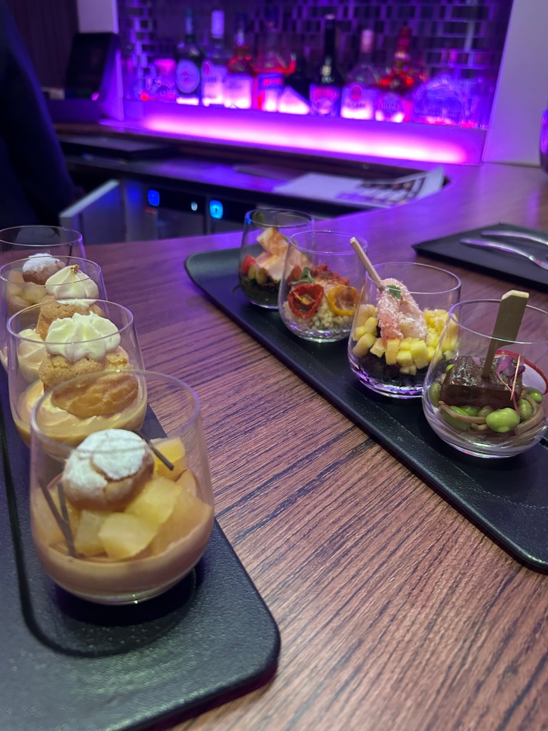 The onboard bar is another of my favourite things about the A380. Having the space to stretch your legs, chat to other passengers or the crew and just have a change of scenery at 41,000 feet is incredible. The bar serves a range of drinks and even has canapés, as well as crisps and sweet snacks. I had a number of Aperol royals and champagnes!