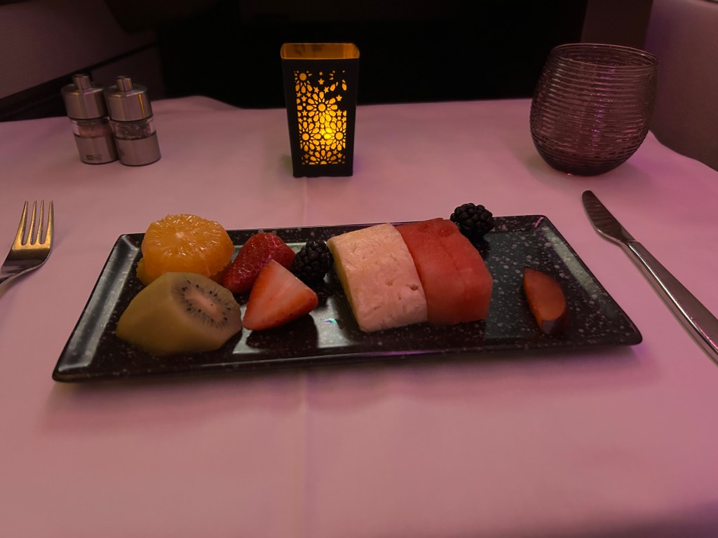 Service was smooth but not slick. I didn’t get a food or drinks menu. Drinks came out around 45 minutes after departure, quite late for an 0200 flight when most people will want to maximise sleep. I didn’t have a starter as wasn’t very hungry and my main was brought out just after 0300. The other half had to shake me awake as I’d fallen asleep in between my table being laid and the meal being brought out! I’d asked for no bread, but they brought it anyway.