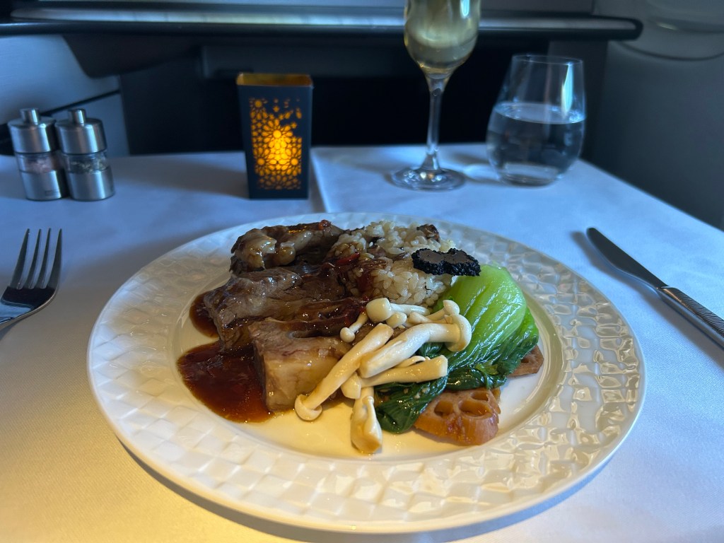 The ribs were amazing. Again! I loved the thick sliced mushrooms and the sauce was delicious. Not as spicy as the Doha to Bangkok flight and the meat was a higher quality cut, absolutely zero fat or chewy bits.