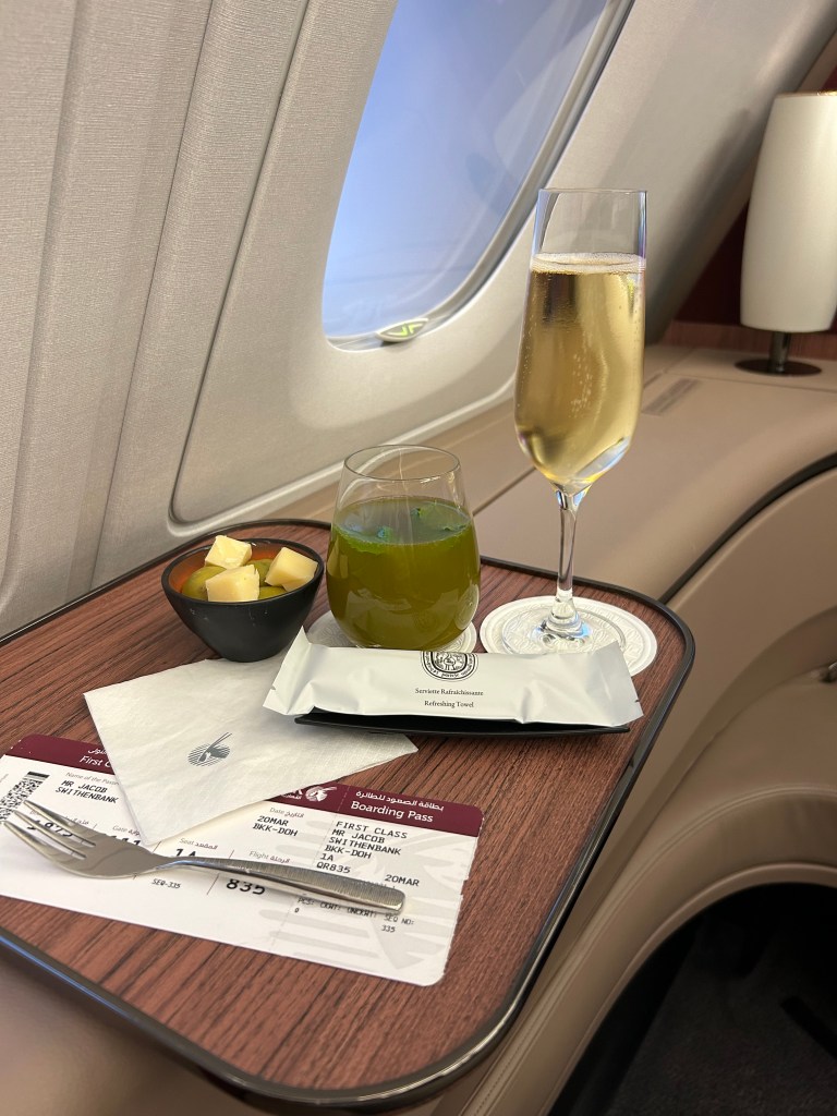 - Qatar Airways First Class on their A380 from Doha to Bangkok, experiencing the Al Safwa lounge at Doha