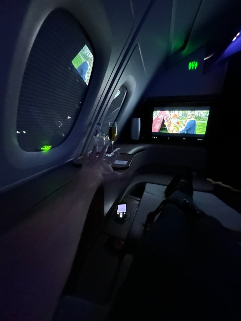 Despite my best efforts, and probably because I drank too much Bolly and Aperol, I fell asleep for almost an hour and woke when the lights came on for landing!