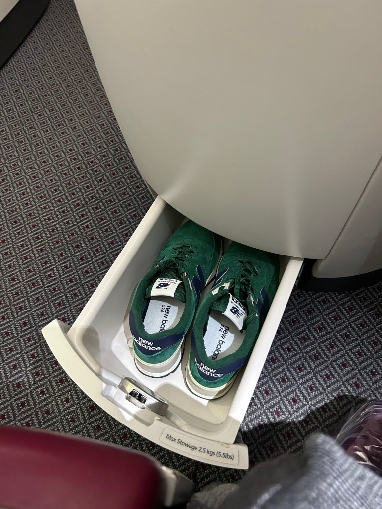 After a much shorter connection at Al Safwa than the outbound, we boarded the 787 for our last leg to Birmingham. I’m a big fan of the Dreamliner and I like the reverse herringbone Business Class seat. Actually, I’m a little bit in love with the little draw for your shoes. It’s just so intuitive! We had the middle pair and although the cabin doesn’t have the privacy of Qsuite, it also doesn’t feel claustrophobic. The cabin feels very open and light. The seat itself feels a bit narrower than Qsuite but I’m not a big guy so it isn’t an issue for me. The foot coffin isn’t an issue, other than it being too far away for me to actually rest my feet on whilst in seat mode. I like the seat controls. They’re easy to use and feel more customisable than Qsuite and even the First Class seat.
