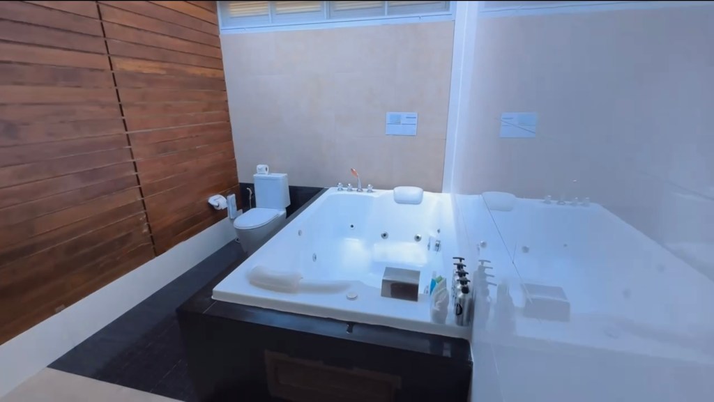 Our deluxe jacuzzi room was spacious and comfortable although the jacuzzi didn’t get particularly hot and not having a separate shower meant sitting in the bath to use the shower. The large windows flooded the room with light but lacked privacy so we kept the curtains closed most of the time. Not that we were in the room much as we’re mostly out on safari. You can watch a walkthrough of the room here, make sure to give my page a like and follow for more reviews and trip reports in your feed!