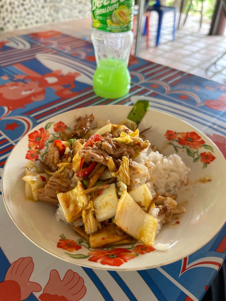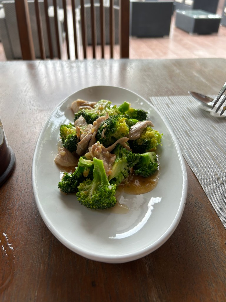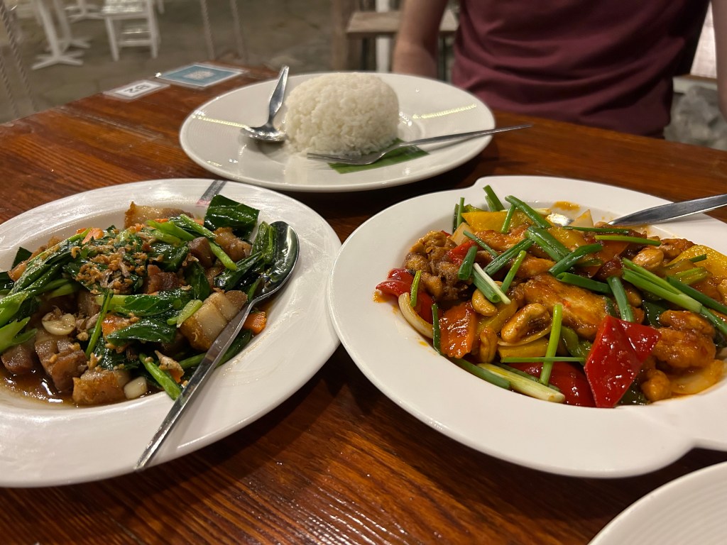The restaurant had a decent menu of Thai and western dishes and we enjoyed a lunch of stir fried pork and broccoli and chicken teriyaki. At dinner, we enjoyed a cocktail each before a meal of sweet n sour beef and beef massamam. Unfortunately, it was literally just us 2 in the restaurant so there was zero atmosphere. Even the staff went home before we’d finished eating and just left us with one lone lady who seemed to be around to lock up.