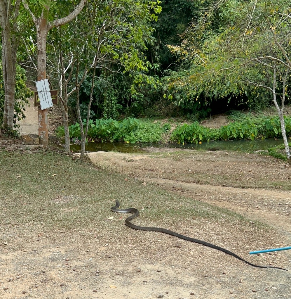 As we’d settled on having a shorter day, and I was struggling to stay awake every time we got back on the truck, we started to make our way out of the park, but not before we saw a massive king cobra being steered away from the campsite!