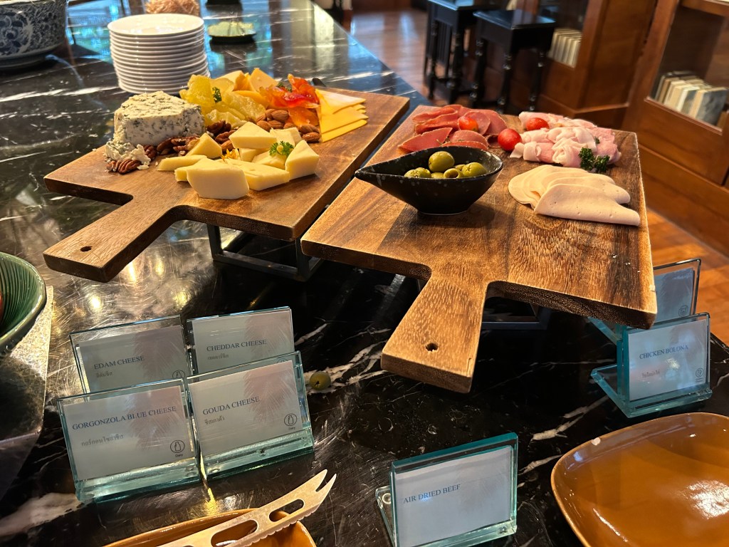 Because 2 nights were paid on points, we got the room upgrade but not the Club Lounge access. Lounge access for the 2 nights we didn’t get complimentary should have been 8000baht (£173) but they did us a deal for 6000baht (£130). Club lounge access gives you a la carte breakfast, afternoon tea, drinks and snacks during the day as well as soft drinks from the pool bar plus evening cocktails and canapés (between 1700 and 1900). Considering that cocktails or a glass of wine in the bar was about 300baht (£6.50), it’s pretty easy to get value for money from the lounge access supplement.
