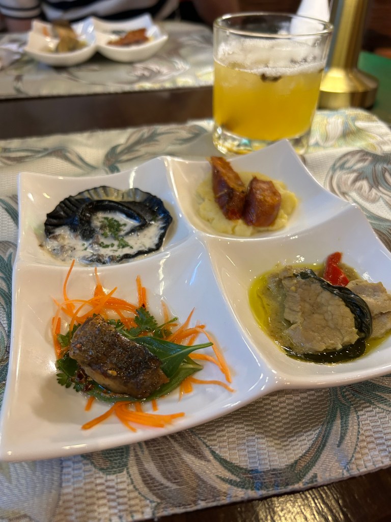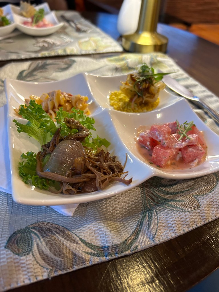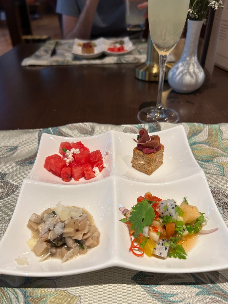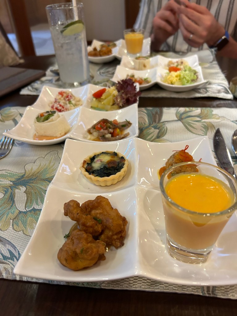 We only had 1 dinner in the hotel, in Pirom, on our first night, but as neither of us were hungry, we just ordered a selection of starters and had a kind of Thai tapas. We sat at a table sunk into the pool which was pretty cool. The other 2 restaurants at the hotel are very seafood based and the other half doesn’t eat seafood so we ate out for the rest of our stay. The restaurants at the hotel are also very expensive, by Thai standards, and with so much choice of places to eat in Hua Hin, we preferred to go out. The tapa at Pirom were effectively free as we used the Luxury & Lifestyle credit.