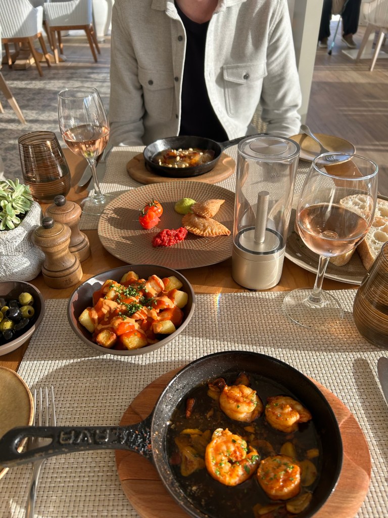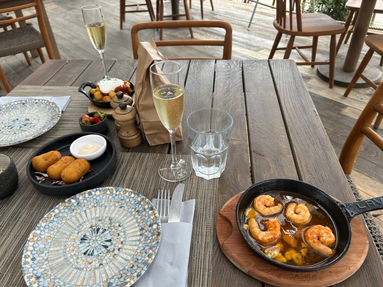 As Chiringuito is on a public beach, the restaurant is roped off and all of the tables have “reserved” signs on them to stop walk-ins from the general public. It was pretty windy and cool, but the restaurant gave us towels to wrap around our legs or shoulders which, honestly, made all the difference! It’s not the most attractive patch of sand but it was quite hypnotic watching the wild sea.